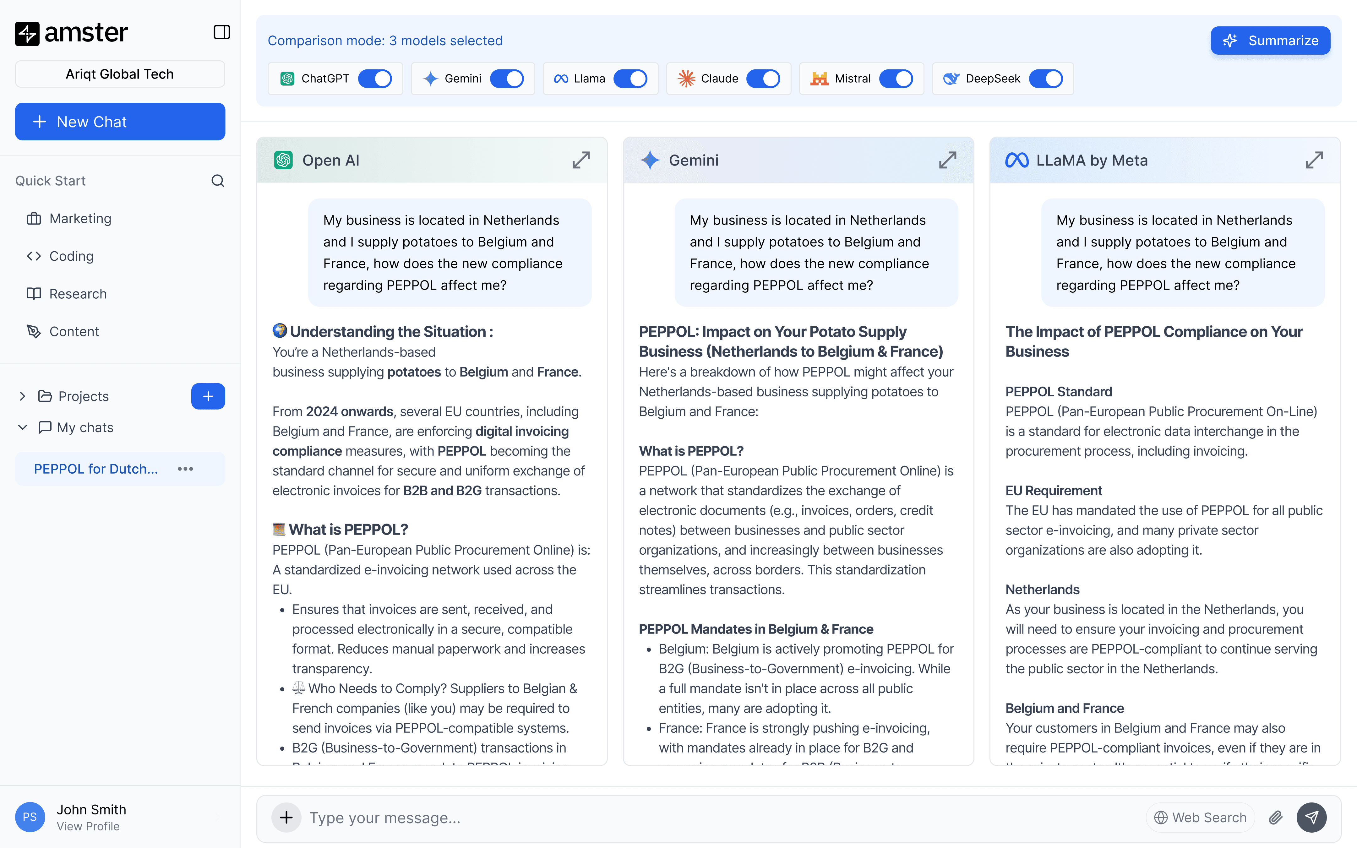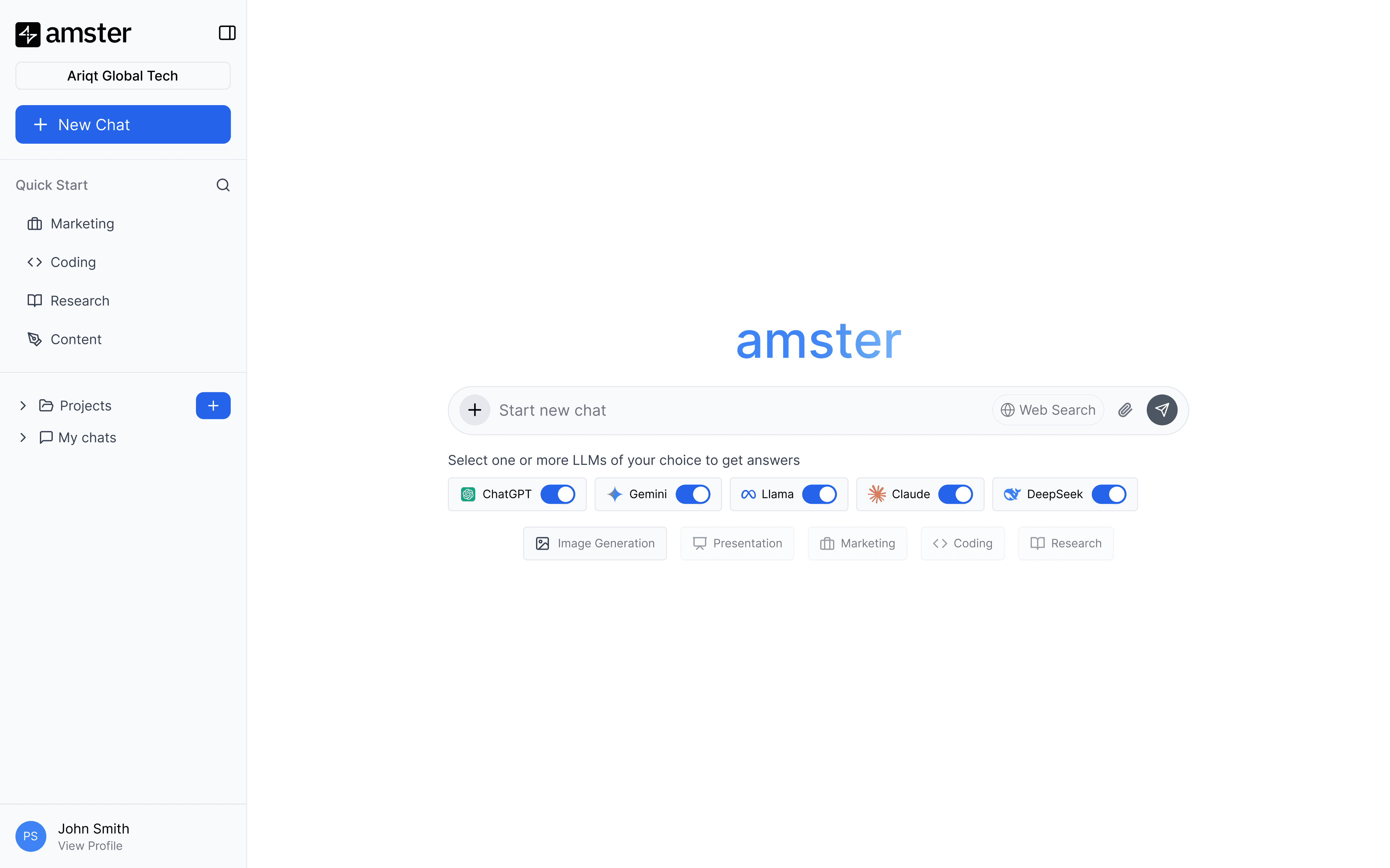 amster integrates leading AI models into one secure hub, enabling teams to compare outputs, collaborate, and make faster decisions without managing multiple tools