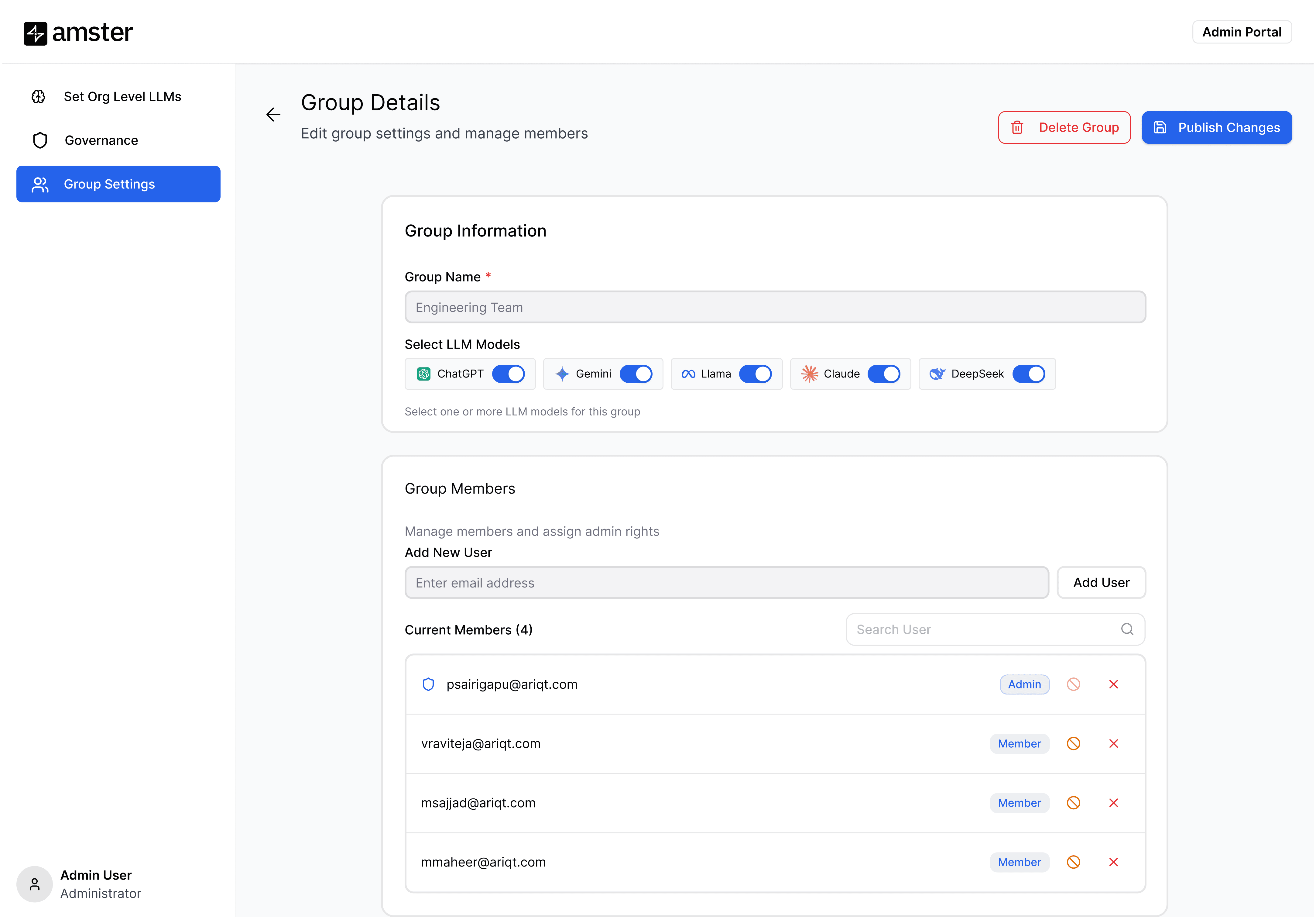 Manage users, models, and governance from one place with full visibility and control just a click away.